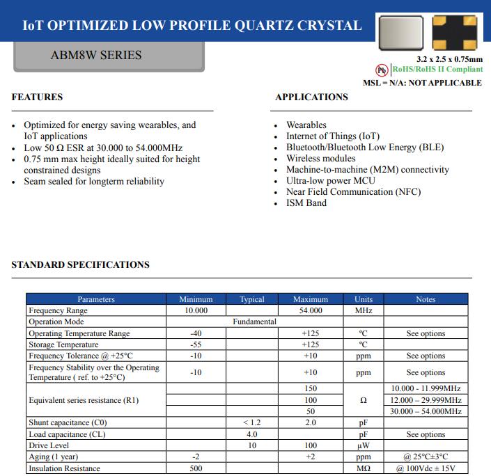 什么使IoT打勾? Abracon晶振的低等效串聯(lián)電阻(ESR)和低負(fù)載電鍍電容(CL)晶體是綠色和節(jié)能MCU和便攜式通信的理想選擇芯片組。 在降低功耗的競爭中,許多片上振蕩器正在被匱乏輸出驅(qū)動(dòng),通常不能使用標(biāo)準(zhǔn)晶體維持振蕩。 Abracon的最新系列用于微功率應(yīng)用的石英晶體克服了這些挑戰(zhàn)。