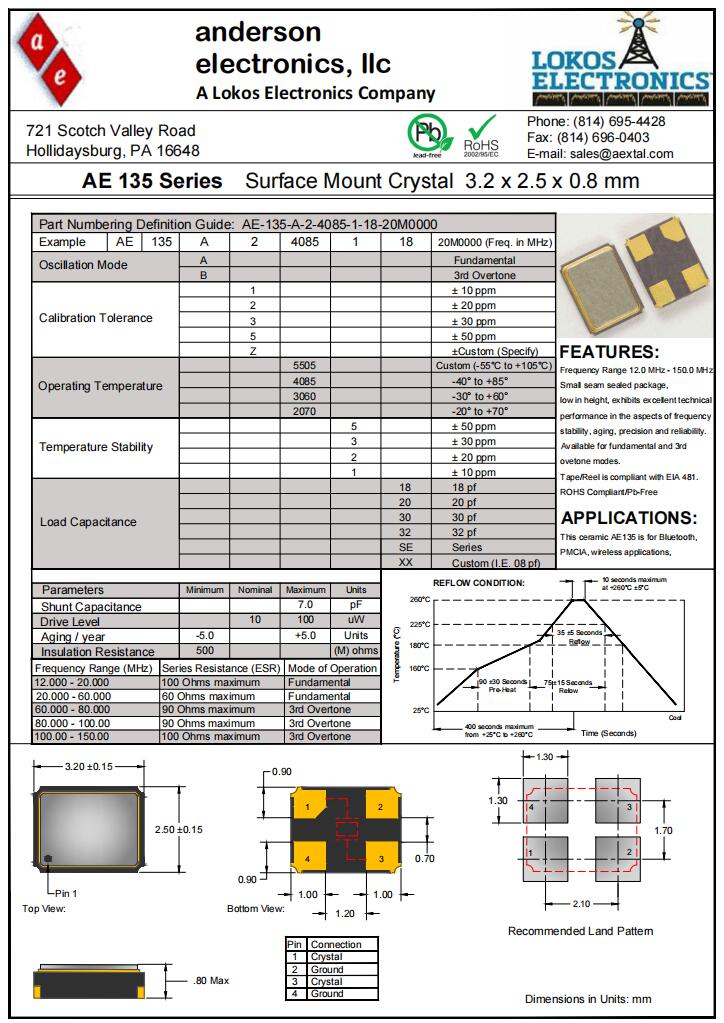美國安德森晶振|AE-135-A-1-4085-2-20-18M4320|3225mm晶振規(guī)格表