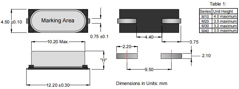 Anderson晶振|AE-M20-A-1-4085-2-30-20M0000|HC-49S貼片晶振尺寸圖
