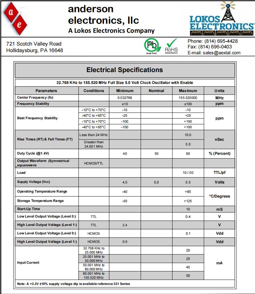 更多>>Anderson進(jìn)口晶振|AE431長方形鐘振|16.384MHz