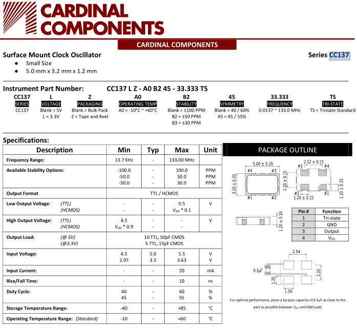 更多>>美國Cardinal晶振,CC137貼片振蕩器,CC137LZ-A0B245-24.000TS晶振