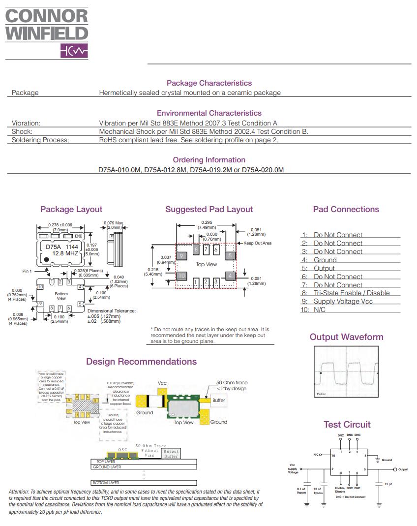 更多>>康納溫菲爾德晶振,D75A晶振,TCXO晶振