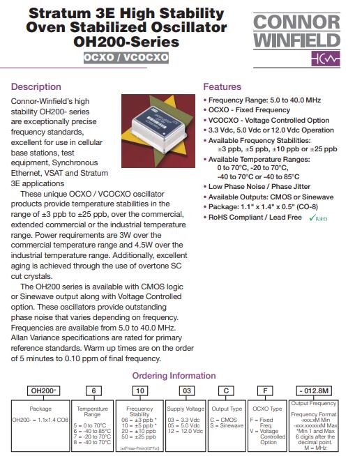 更多>>康納溫菲爾德晶振,OH200晶振,OH200-51003CF-010.0M晶振