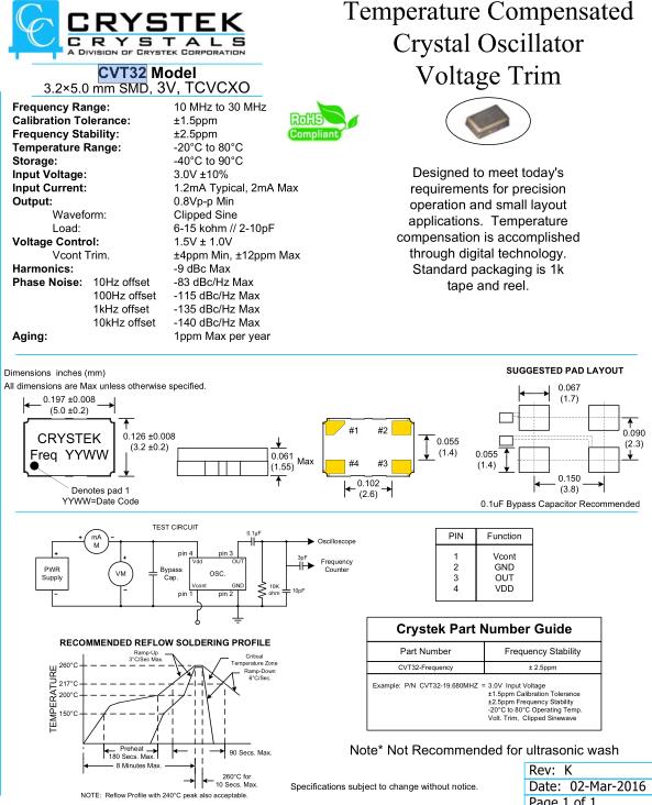 更多>>CVT32壓控溫補(bǔ)晶振,Crystek振蕩器,CVT32-12.000MHZ晶振