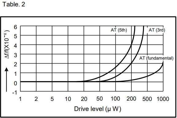 -在許多情況下,過(guò)度驅(qū)動(dòng)晶體可能導(dǎo)致其頻率和電阻變化到一個(gè)更高的值,這將意味著晶體電特性的改變。因此,活動(dòng)量有時(shí)會(huì)出現(xiàn)下降。它也可能導(dǎo)致一個(gè)破碎的晶片,由于太大的功率過(guò)度驅(qū)動(dòng)的時(shí)間間隔太長(zhǎng)。表2描述了高驅(qū)動(dòng)功率時(shí)頻率移位的常見現(xiàn)象。