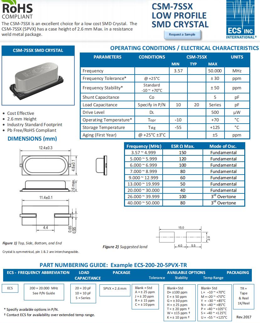 | ECS-200-20-5PVX | ECS晶振 | CSM-7SSX | 20MHz | -10°C ~ 70°C |