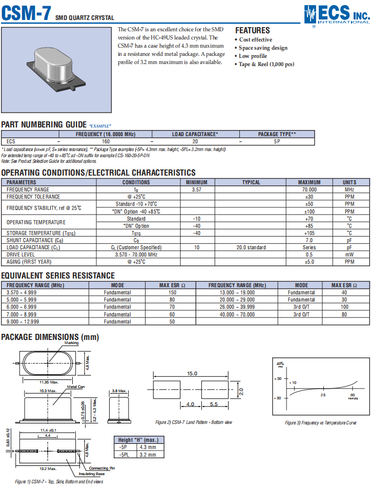 ECS-200-16-5P-TR,ECS品牌晶振,CSM-7貼片石英晶體,安防設備晶振,規(guī)格表