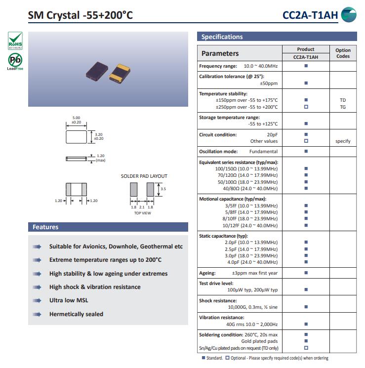 | 頻率溫度特征 | f_tem | ±150ppm over -55 to +175°C±250ppm over -55 to +200°C | 超出標(biāo)準(zhǔn)的規(guī)格請(qǐng)聯(lián)系我們. | |