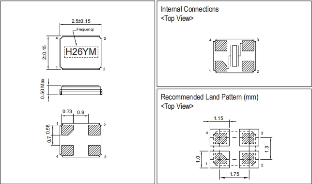 ■微型超薄貼片產(chǎn)品尺寸(2.5×2.0× 0.5 max)