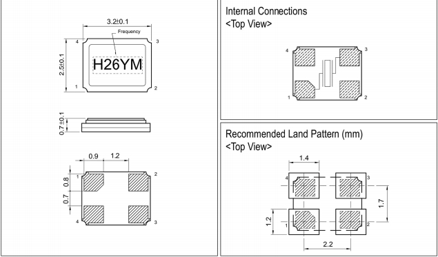 臺(tái)灣HELE晶振,X3S020000BK1H-U,6G光纖通道晶振尺寸圖