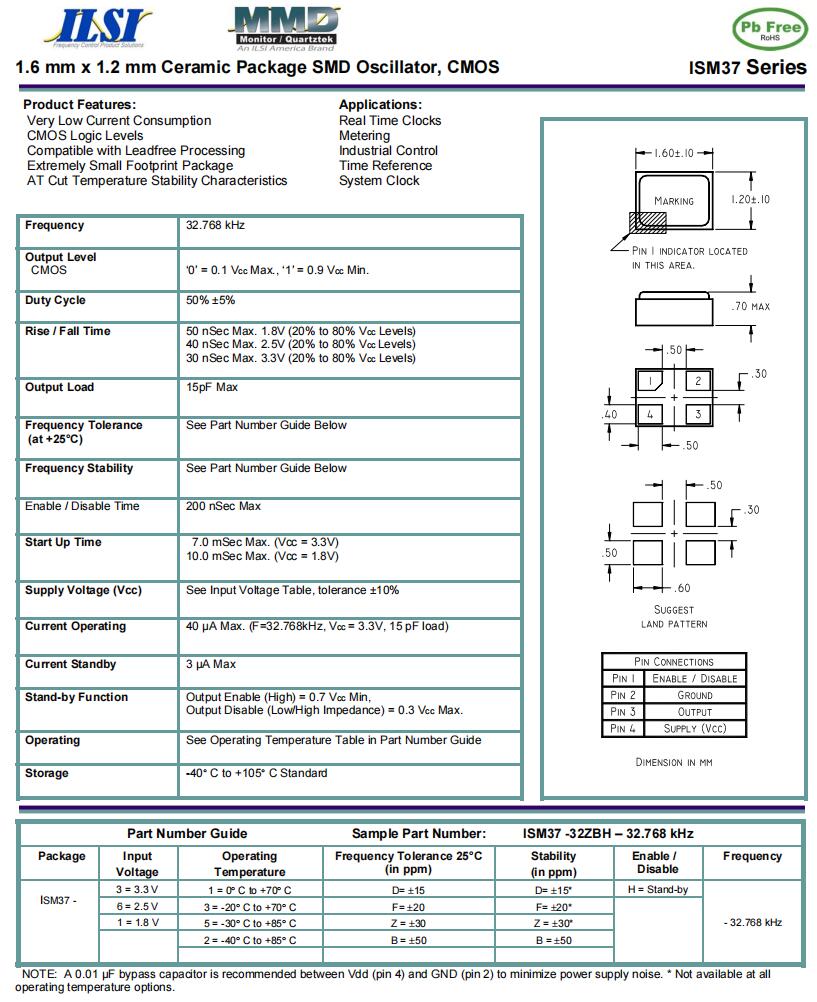 | IL3X2-HX5F12.5- 32.768 KHz | ILSI | IL3X2 | -40°C ~ 85°C | 32.768 kHz | ±20ppm | 12.5 pF |
