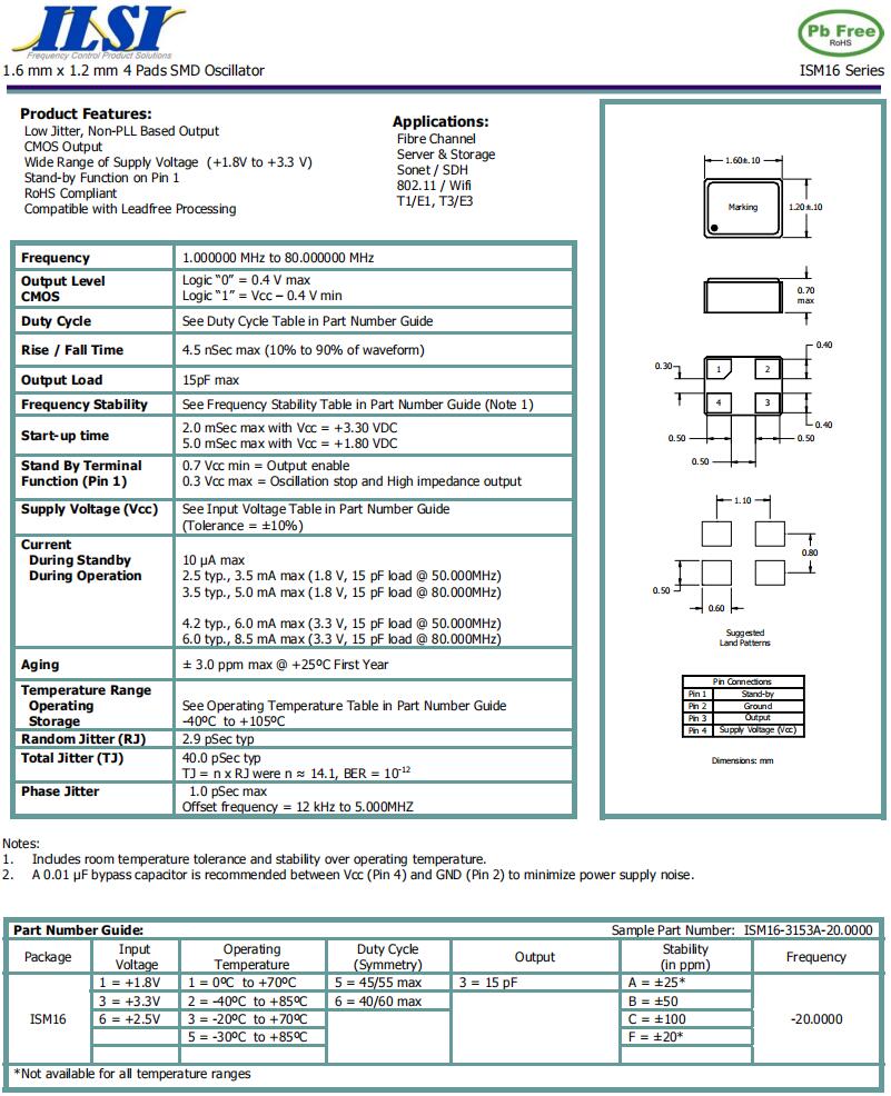 | ILCX13-JJ3F16- 16.000 MHz | ILSI | ILCX13 | -20°C ~ 70°C | 16 MHz | ±10ppm | 16 pF |