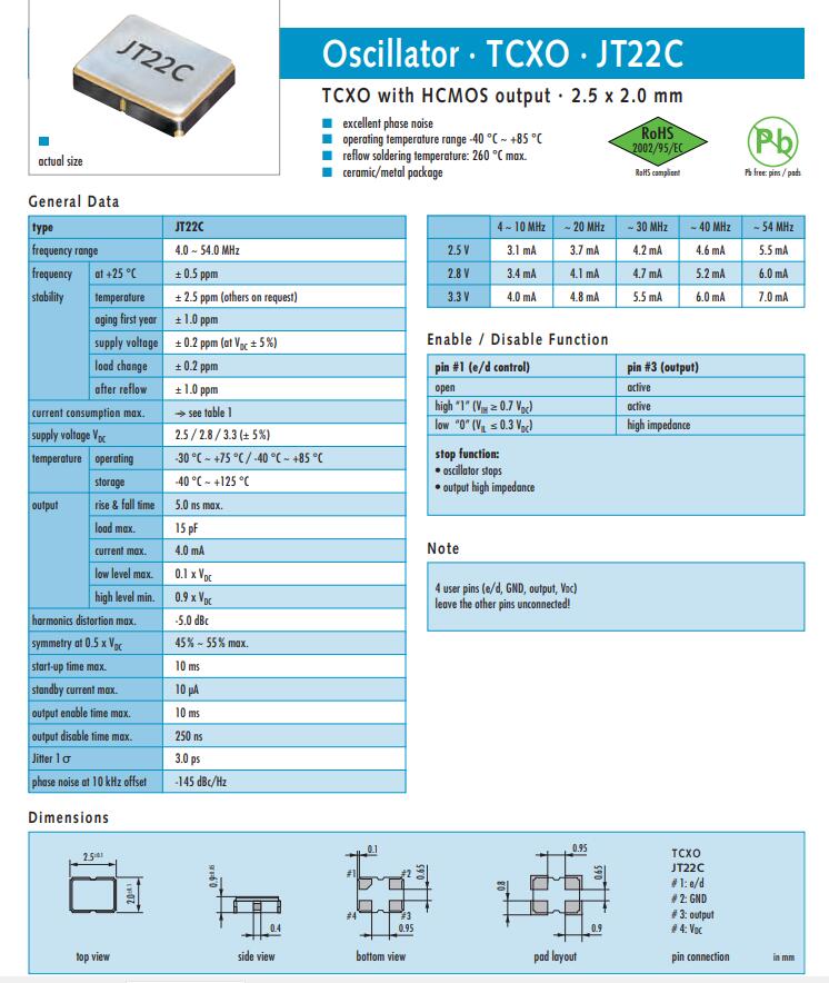 德國Jauch晶振,JT22C晶振,2520有源晶振