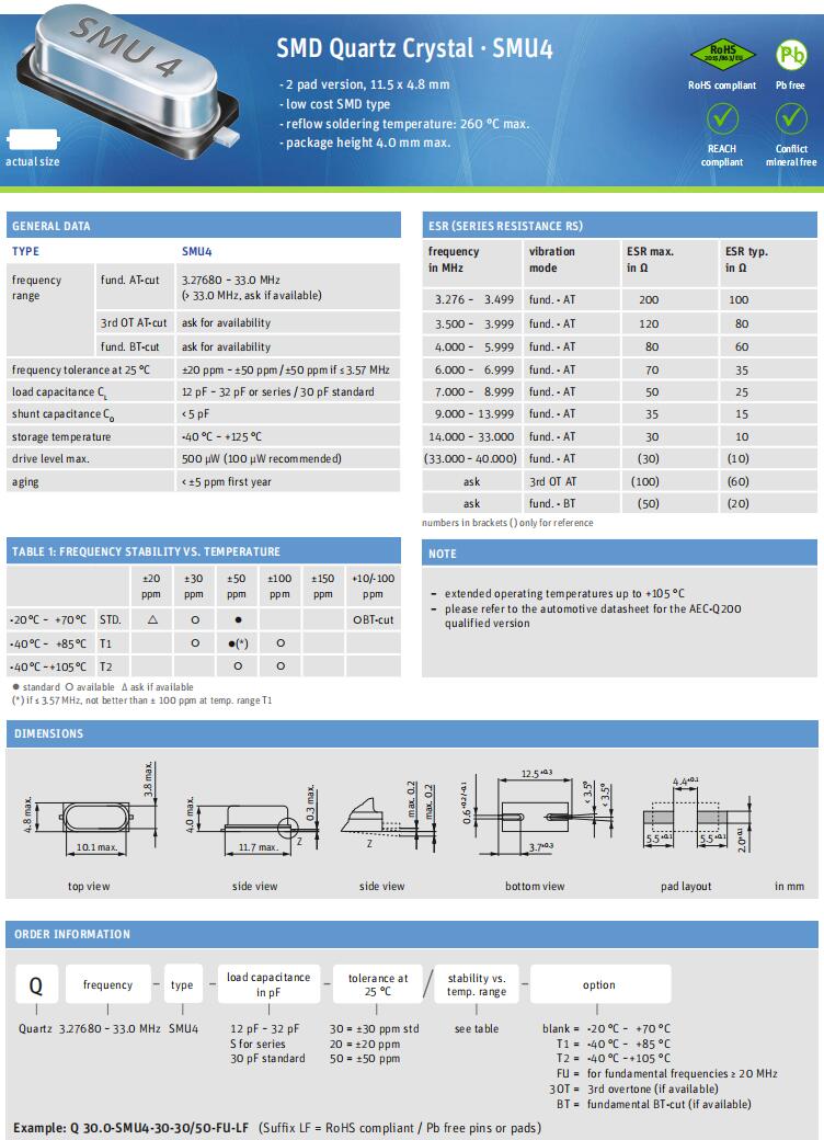 Q 20.0-SMU4-30-30/50-T2-FU-LF-Jauch品牌-6G低成本晶振,Jauch晶振,SMU4進(jìn)口晶振,無源晶振,Q 20.0-SMU4-30-30/50-T2-FU-LF晶振,貼片晶振,石英晶體,頻率20MHz,負(fù)載30pF,工作溫度-40~105°C,頻率穩(wěn)定性50ppm,耐高溫晶振,高性能晶振,低成本晶振,小家電應(yīng)用晶振,儲存卡晶振,音頻系統(tǒng)晶振,數(shù)字設(shè)備晶振.
