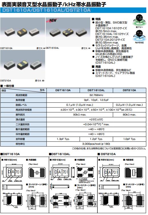 | KDS晶振 | 7BD03276A2F | DST310S | 3215 | 32.768KHZ | 12.5PF | 20PPM |