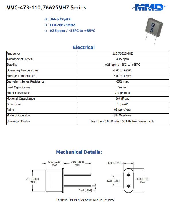 Mmdcomp晶振,MMC-473-110.76625MHZ,6G光纖通道晶振規(guī)格表
