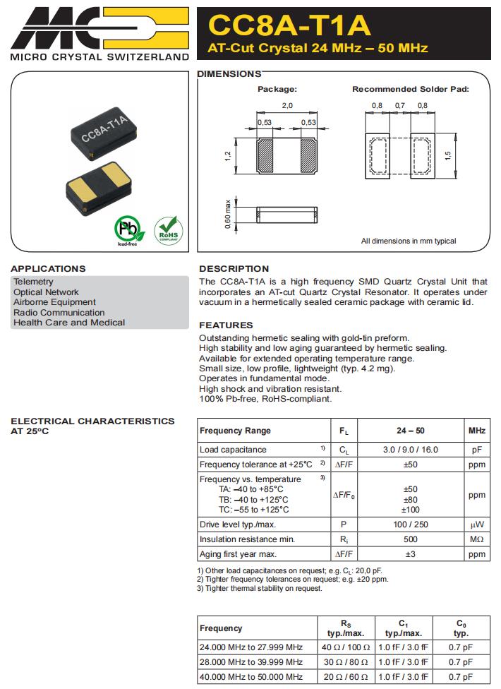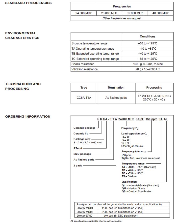 CC8A-T1A-25.000MHz-9.0pF-50ppm-TA-QI,6G基站晶振,高頻貼片石英晶體規(guī)格表