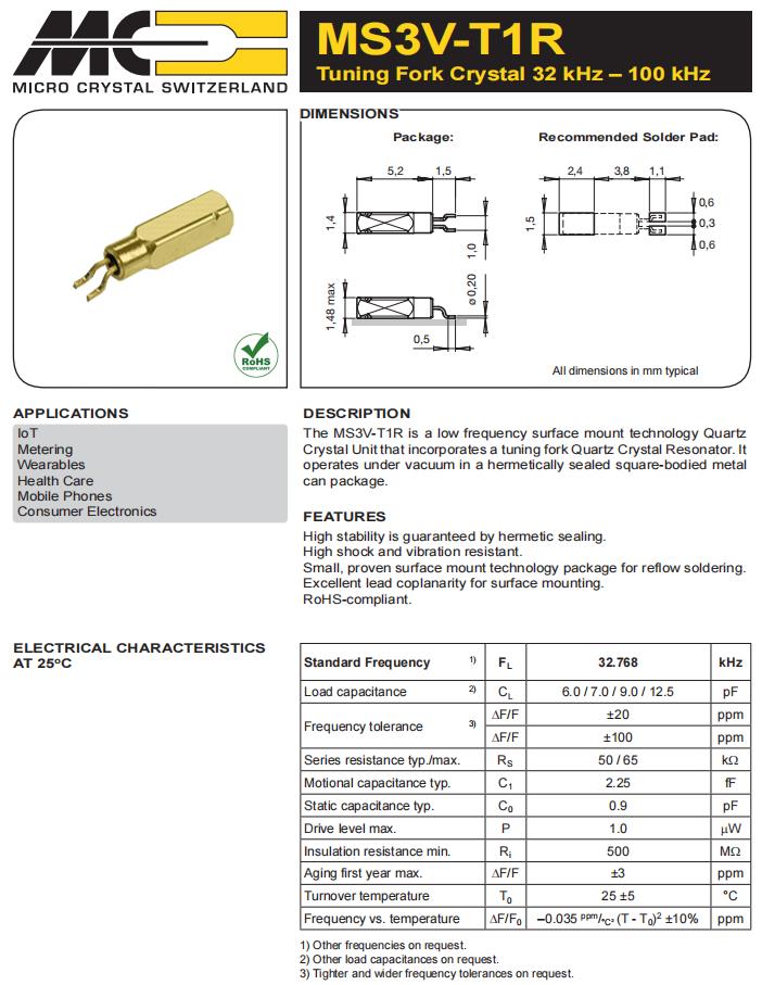 | MS1V-T1K-32.768kHz-6pF-20PPM-TA-QC-Au | Micro 晶振 | 晶體 32.768 kHz 6.0 pF +/-20 PPM -40/+85C | Crystals |