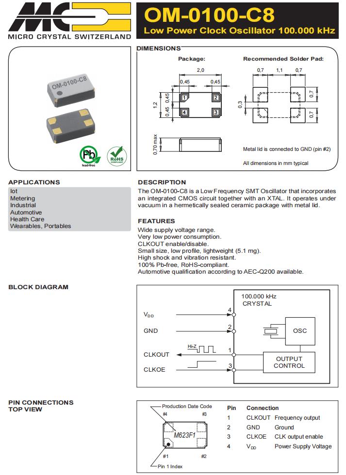 | OM-7605-C8-20PPM-TA-QA | Micro Crystal | 標(biāo)準(zhǔn)時(shí)鐘振蕩器 32.768kHz 20ppm 1.6-5.5V |