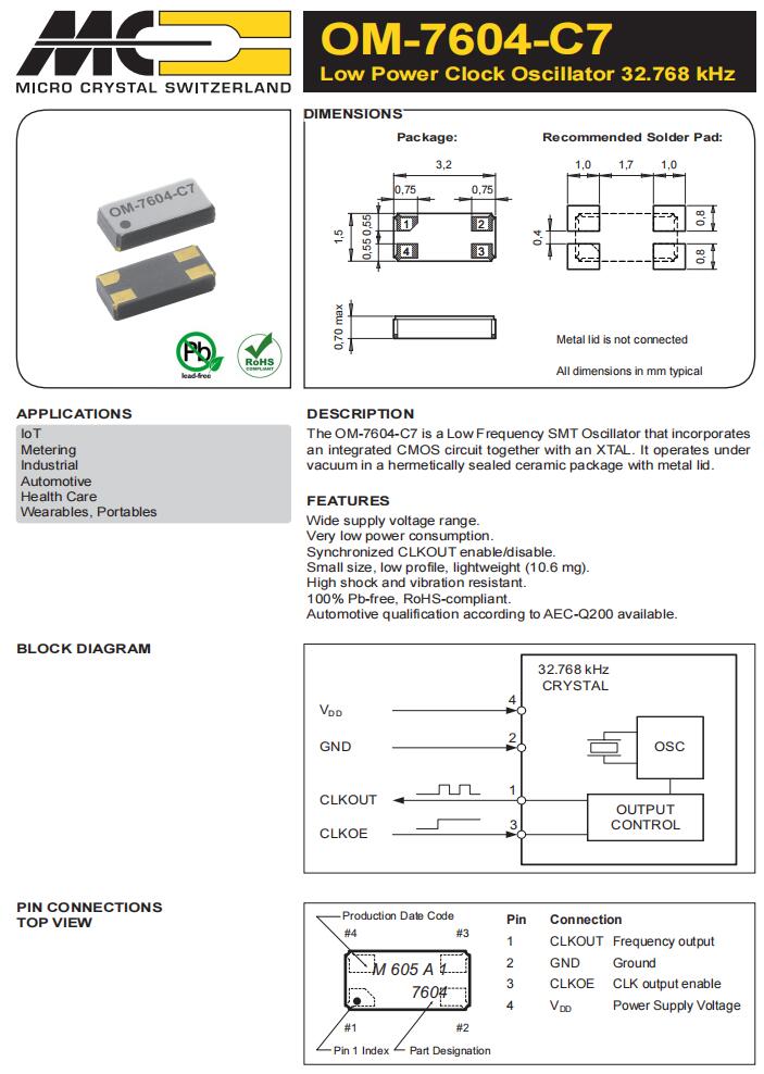 | CC4V-T1A-32.768kHz-12.5pF-20PPM-TC-QC | Micro 晶振 | 晶體 32.768 kHz 12.5 pF +/-20 PPM -55/+125C | Crystals |