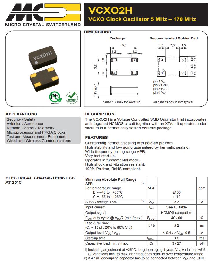 VCX02HV-B-100.000MHz-T3,VCXO晶振,6G無(wú)線(xiàn)通信晶振,瑞士微晶晶振,VCX02H有源晶振,VCX02HV-B-100.000MHz-T3晶振,VCXO晶振,5032mm晶振,頻率100MHz,電壓3.3V,頻率穩(wěn)定性130ppm,工作溫度-40~85°C,無(wú)鉛環(huán)保晶振,高品質(zhì)晶振,6G無(wú)線(xiàn)通信晶振,安全設(shè)備晶振,有線(xiàn)通信晶振,航空航天晶振.