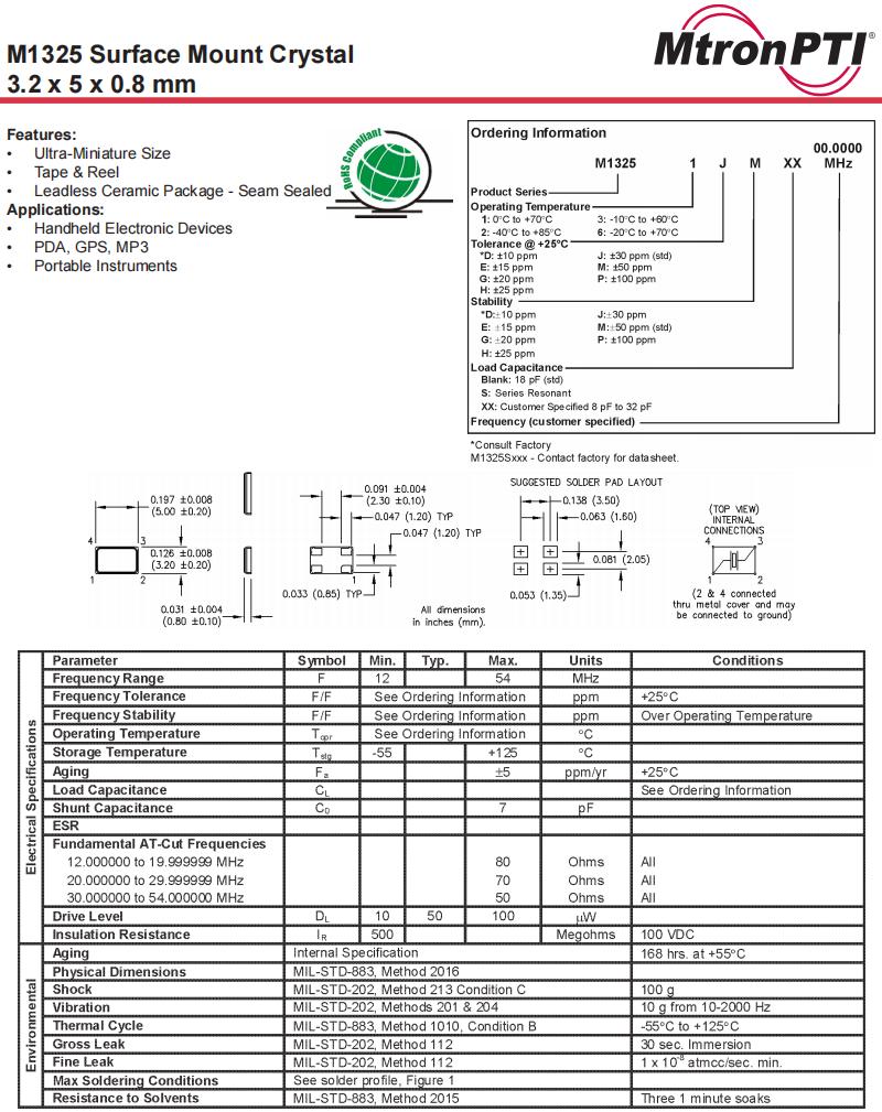| M1325S143 12.000000 | M1325 | 12MHz | 3.2 x 5.0 mm | ±30 ppm |
