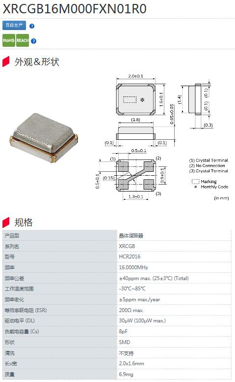 更多>>日本村田晶振,XRCGB系列晶振,HCR2016晶振,XRCGB16M000FXN01R0晶振