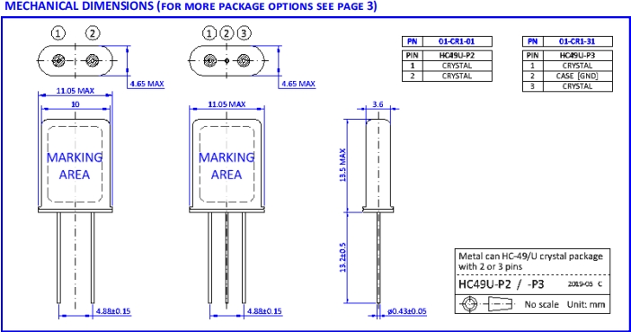 ●傳統(tǒng)的HC-49/U封裝,2或3引腳,SMD形式可用