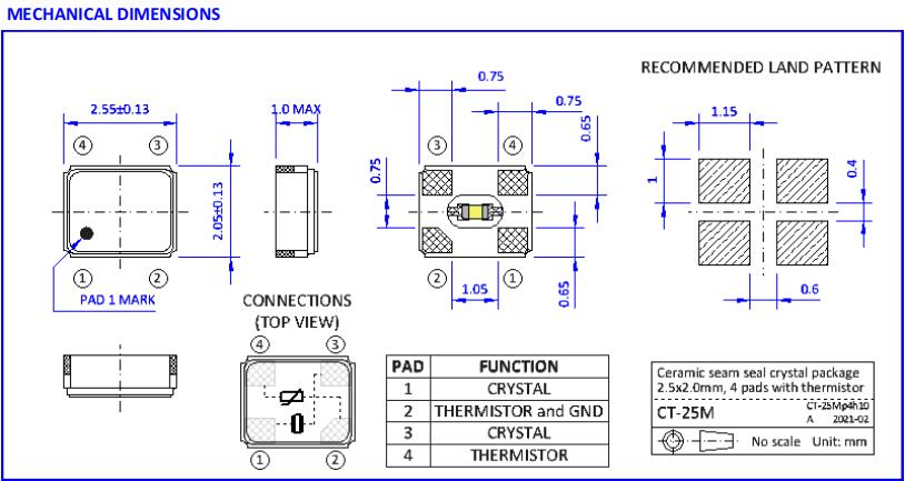 | Stability over operating temp. | TC | ±10ppm | Depending on operating temperature range, other options available |