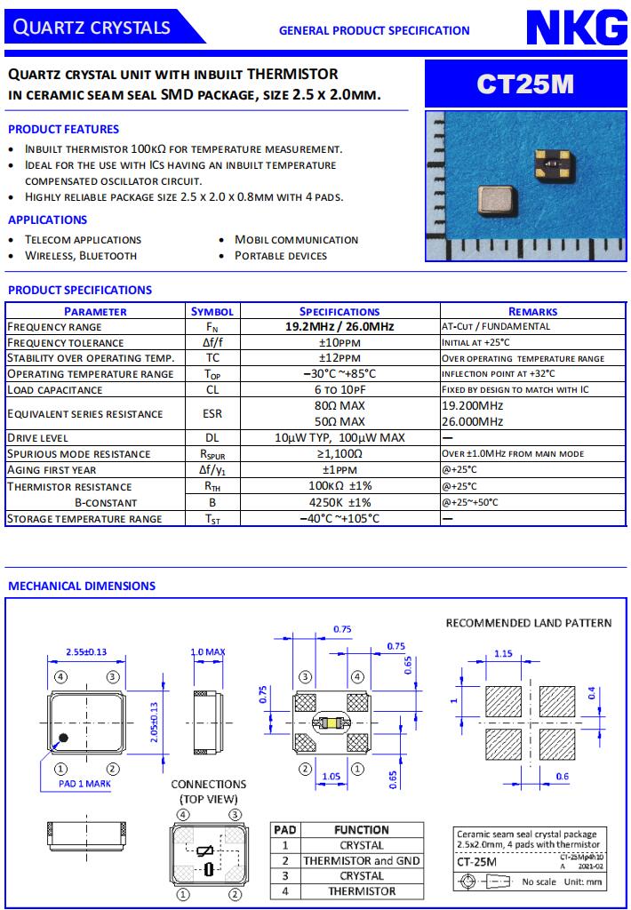 NKG晶振|CT25M26.000F10V11-100|2520mm晶振,NKG晶振,CT25M進(jìn)口晶振,熱敏晶體,CT25M26.000F10V11-100晶振,貼片石英晶振,晶體諧振器,2520mm晶振,四腳封裝晶振,SMD晶振,頻率26MHz,負(fù)載10pF,工作溫度-30~85°C,頻率容差10pm,高精度晶振,輕薄小晶振,無鉛環(huán)保晶振,無線通信晶振,移動應(yīng)用晶振,無線局域網(wǎng)晶振,藍(lán)牙音響晶振.