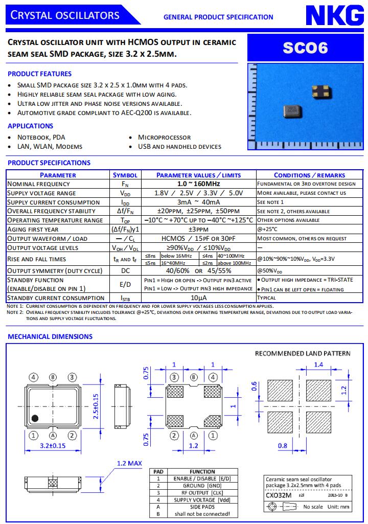 NKG晶振|SCO6-3-D-48.0000-YTS-EXT|3225有源晶振規(guī)格表