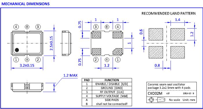 NKG晶振|SCO6-3-D-48.0000-YTS-EXT|3225有源晶振尺寸圖