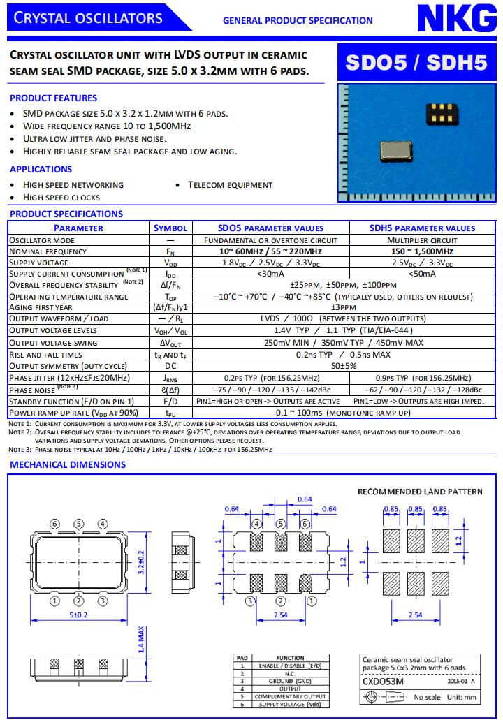 NKG進口晶振|SDO5-6-A-150.00-WTS-EXT|5032差分晶振規(guī)格表