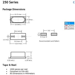 OSCILENT晶振,250-14.7456M-20-05KS-TR,6G無(wú)線局域網(wǎng)晶振尺寸圖