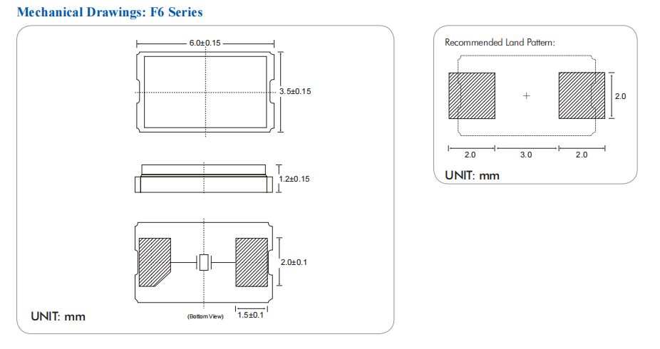 | F61200046 | Diodes晶振 | F6 | 12MHz | ±30ppm | ±20ppm | 18pF | -40°C ~ 85°C |