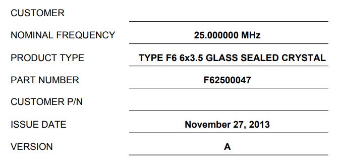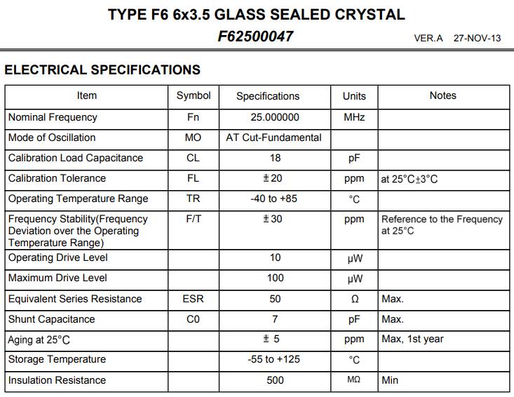 | 型號 | F62500047晶振 |