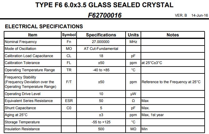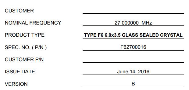 | 型號 | F62700016晶振 |