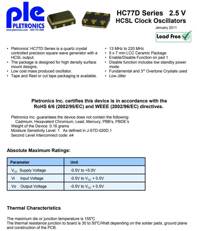 Pletronics晶振公司關(guān)注用戶需求,不斷研發(fā)新品,改善現(xiàn)有產(chǎn)品.能夠滿足不同客戶對于石英晶振, 貼片晶振,溫補(bǔ)晶體振蕩器等頻率控制元件的需求提供一個(gè)完整的解決方案.普銳特晶振,HC77D晶振,7050有源晶振