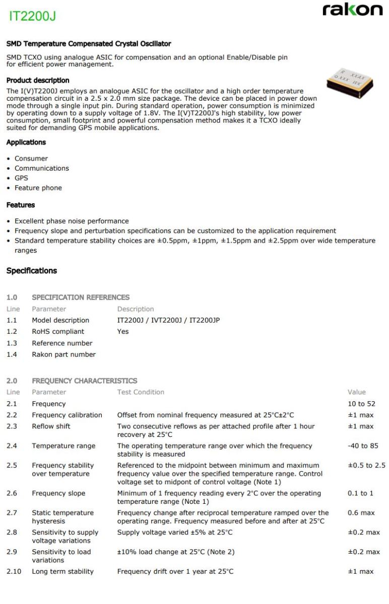 更多>>美國瑞康晶振,IT2200J晶振,2520溫補(bǔ)晶振