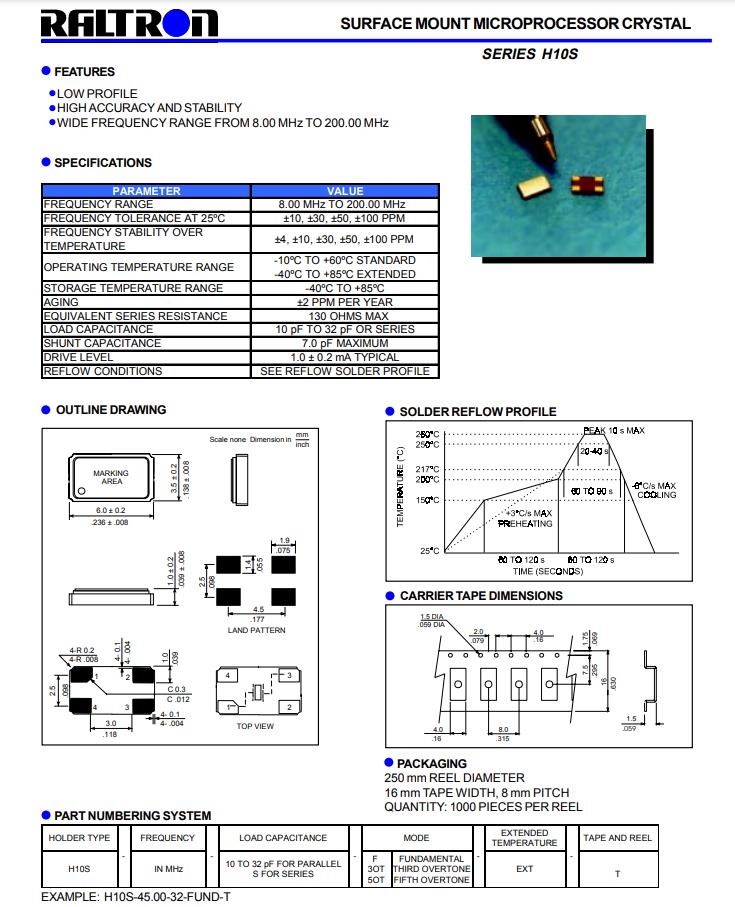 Raltron晶振,H10S-16.384-18-1030-TR,6G無線應用晶振,Raltron晶振,美國進口晶振,H10S石英晶體,H10S-16.384-18-1030-TR晶振,石英貼片晶振,6035mm晶振,頻率16.384MHz,負載18pF,頻率穩(wěn)定性30ppm,工作溫度-10~60°C,高精度晶振,無鉛環(huán)保晶振,6G無線應用晶振,攝像機晶振,網(wǎng)站終端晶振,通訊設備晶振.