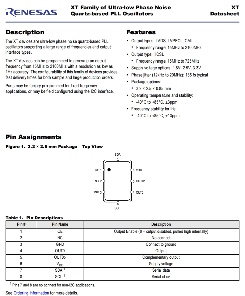 | XTL312156.250000I | Renesas Electronics America Inc | XT | 156.25 MHz | LVDS | 1.8V | ±3ppm |