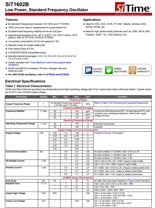 更多>>SiTime晶振,SiT1602B系列晶振,LVCMOS/HCMOS兼容輸出晶振