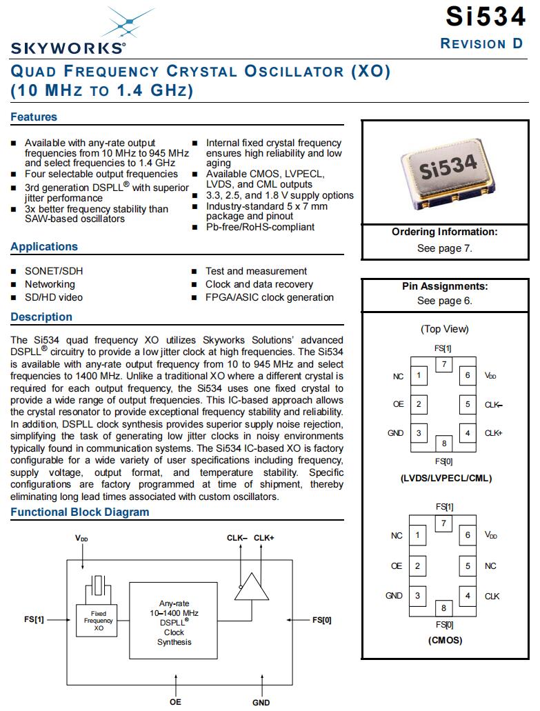 | 535FC125M000DG | Skyworks Solutions Inc. | Si535 | 125 MHz | LVDS | 2.5V | ±7ppm |