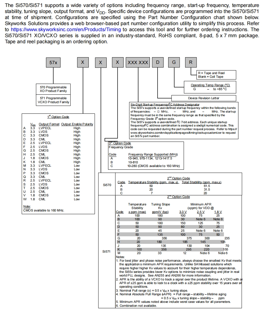 | 571AMA000121DG | Skyworks Solutions Inc. | Si571 | 100 MHz | LVPECL | 3.3V | ±20ppm |