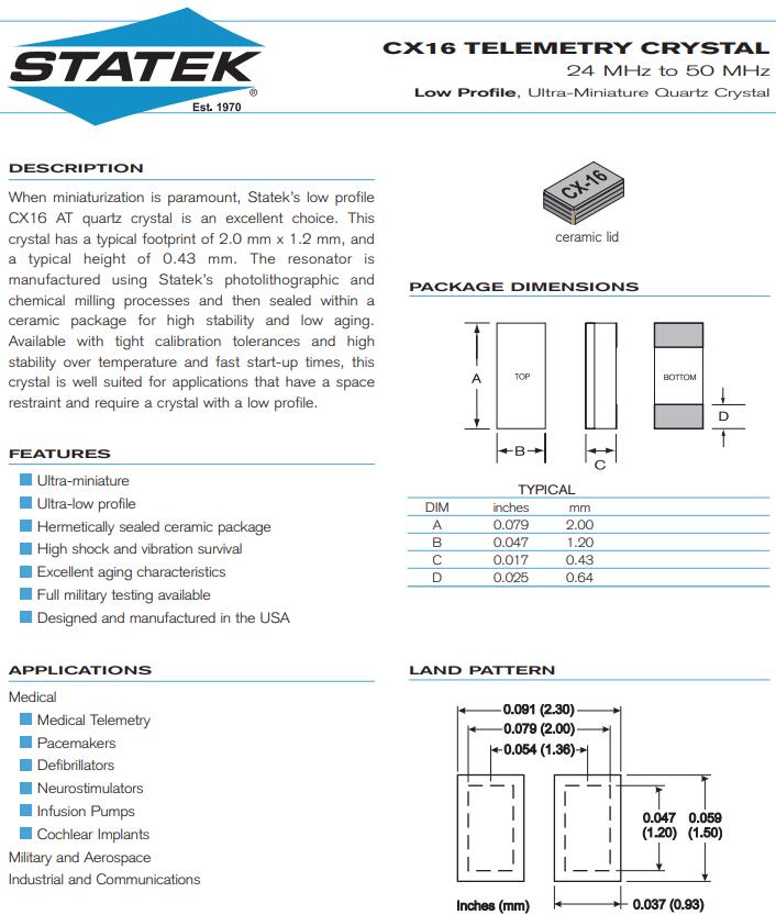 更多>>美國(guó)STATEK晶振,CX16AT晶振,2012兆赫茲晶振