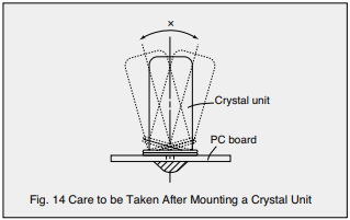(4)在PC板上安裝晶體單元后,移動(dòng)如圖14所示的單元使支架基底玻璃破裂導(dǎo)致特性惡化。別動(dòng)了這樣的水晶單元。