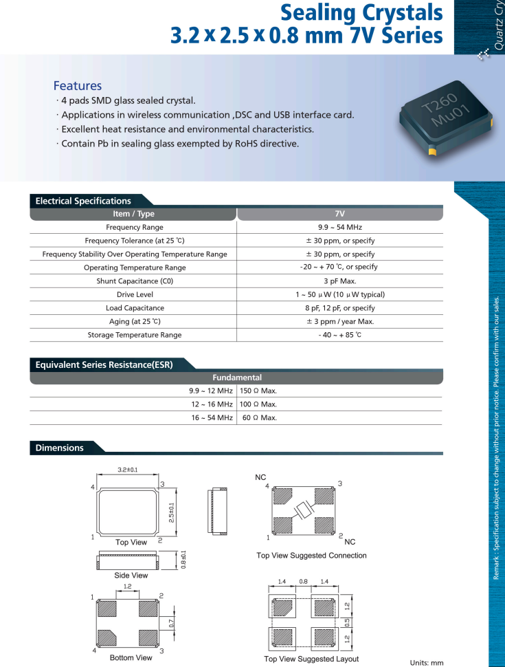 | 老化 | ± 3 ppm / year Max. |
