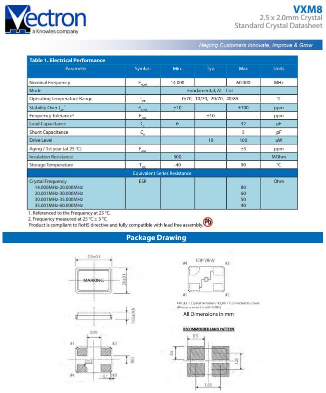 無源晶體與有源晶振的區(qū)別、應用范圍及用法:維管石英晶體,VXM8晶振,2520四腳晶振