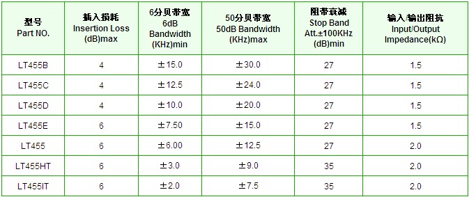 LT455E陶瓷濾波器規(guī)格