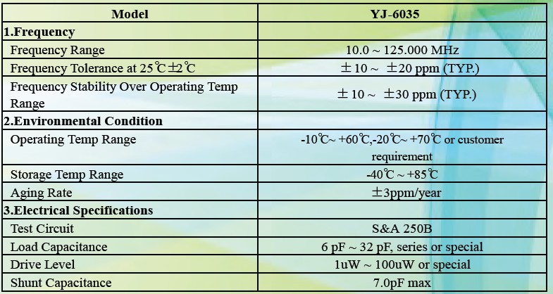 石英晶振6035規(guī)格
